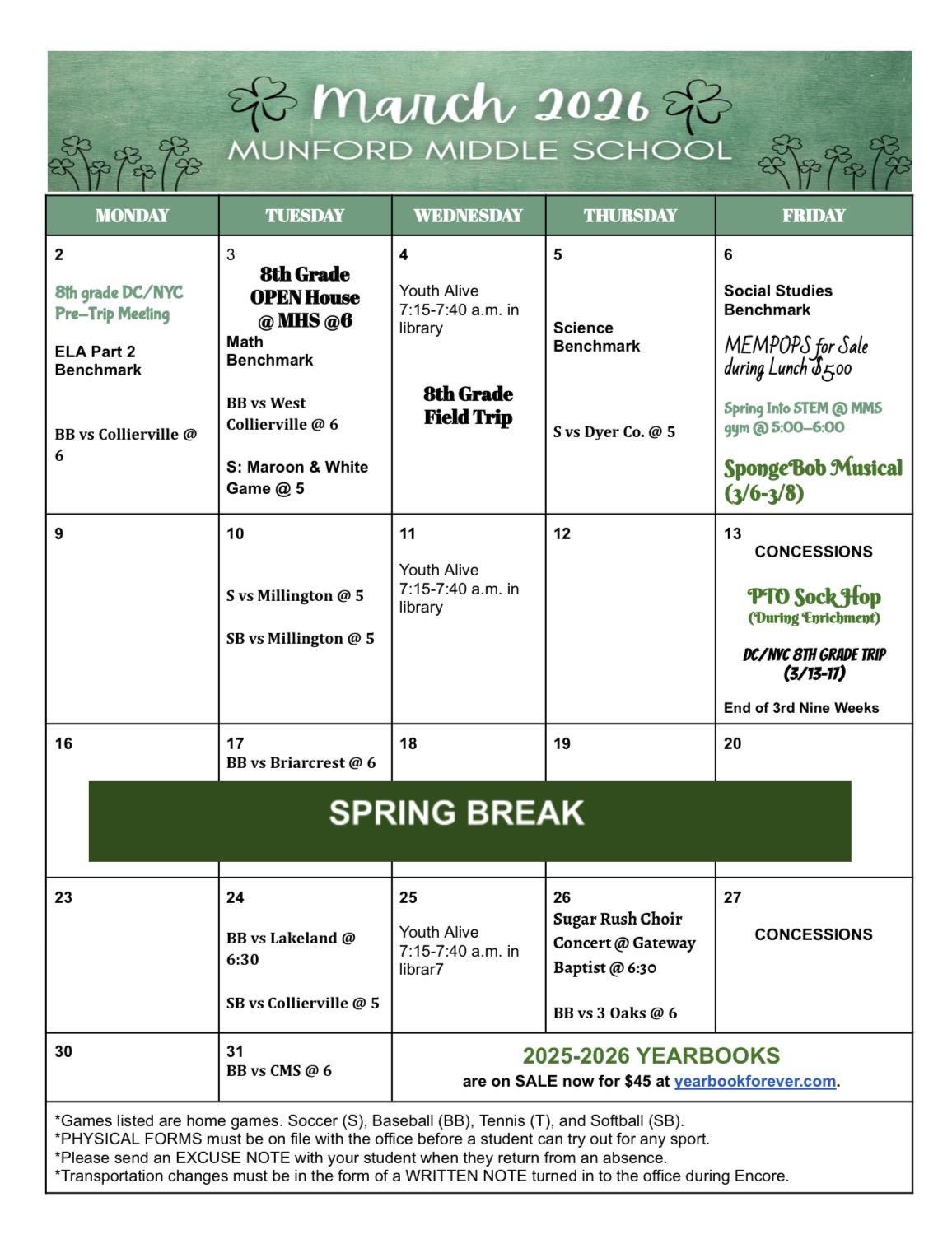 Munford Middle School's Tennis Try outs will be Friday, February 20th from 3:30 to 4:45 at Munford High's Tennis Courts. Students must have a current sports physical on file to try out. If you have any questions, please contact Coach Barlow at